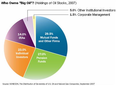 - Paying dividends to the owners. Who owns oil companies? Executives own 1.5%. The remainder is owned by, well, you and me:
