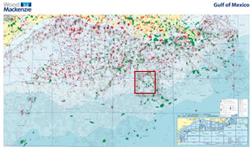 Over at the website of energy consultant Wood Mackenzie, I found an oil and gas map of the Gulf of Mexico that will help illustrate my point:
