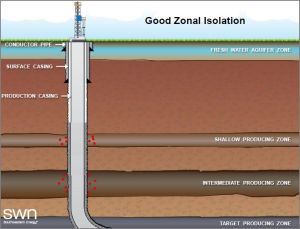 From all practical standpoints, it is physically and geomechanically impossible to induce a fracture in a well below 5,000 feet that extends into shallow freshwater sands above 1,000 feet. Fox’s cute little cartoon may be effective propaganda but it is not rooted in science or in any real world observation.