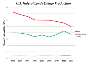 At the request of Congress, the Energy Information Administration issued a report which directly addresses the amount of production of oil and gas from lands under federal jurisdiction (offshore, onshore and Indian tribal lands) for the period 2003-2011.
