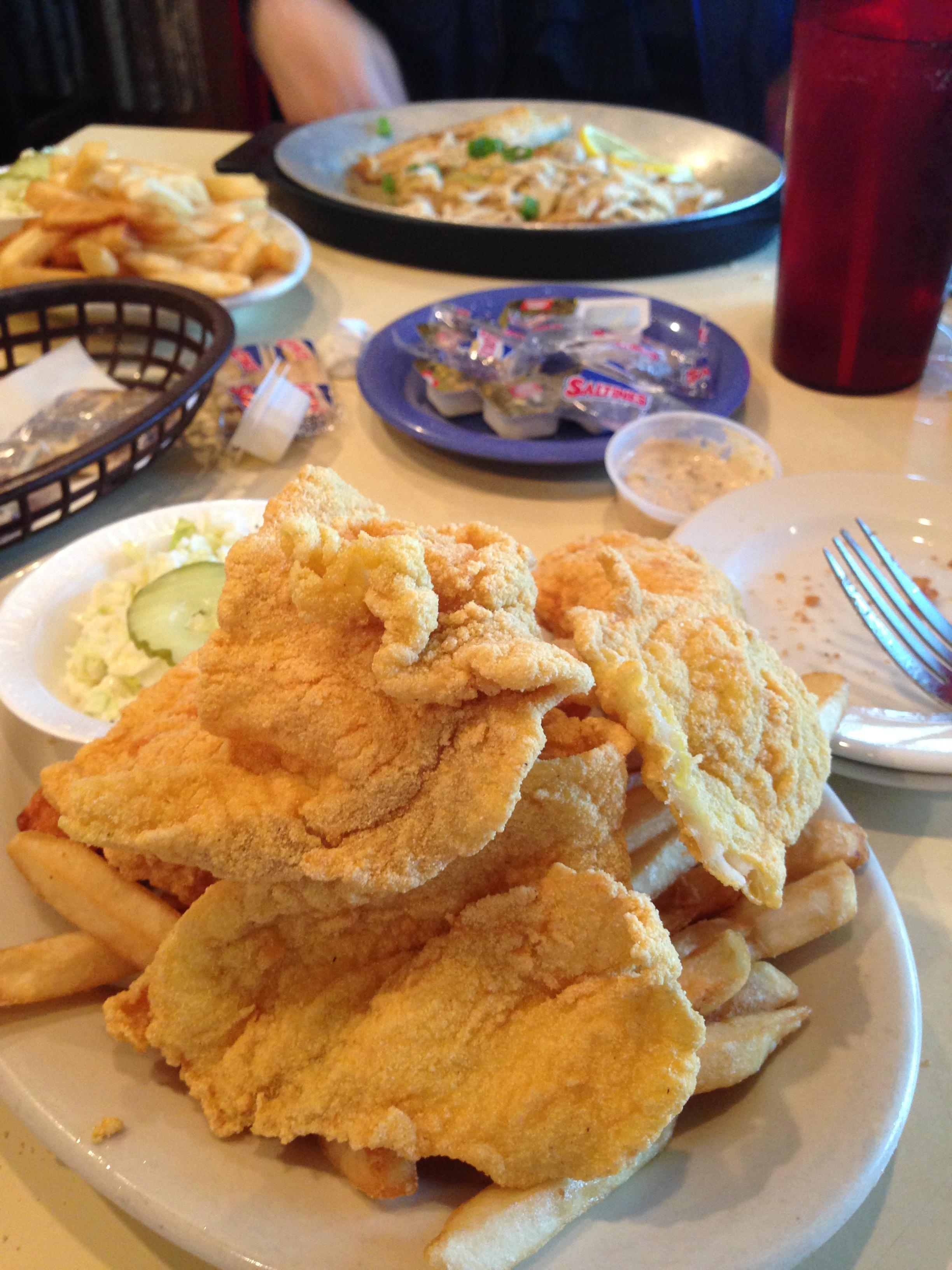 Famous seafood restaurant at Pass Manchac, LA. Known for thin fried catfish (foreground).